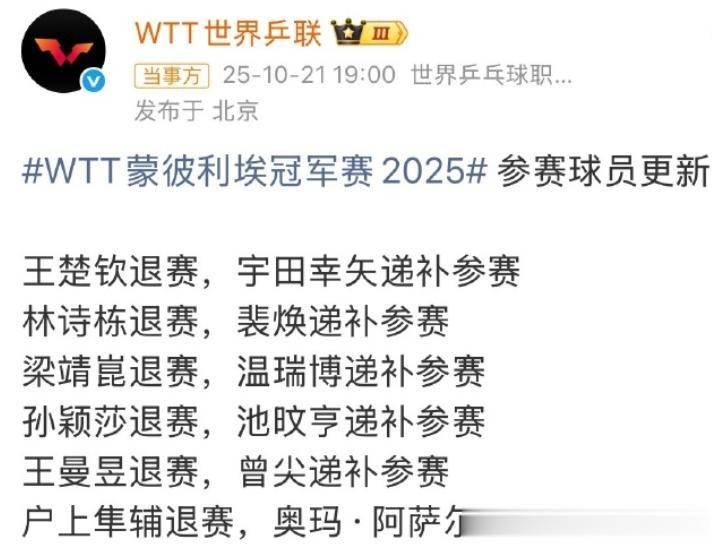 这次由于全运会和其在时间上有冲突,再加上考虑到身体情况,王楚钦、孙颖莎、林诗栋等主力全部退赛,缺席法国冠军赛。