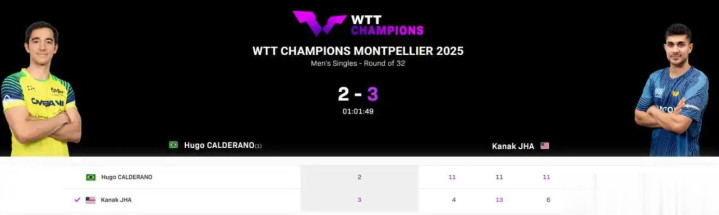 这次头号种子选手,曾好几次击败国乒核心王楚钦,世界男单排第3的巴西雨果·卡尔德拉诺,爆出大冷门。